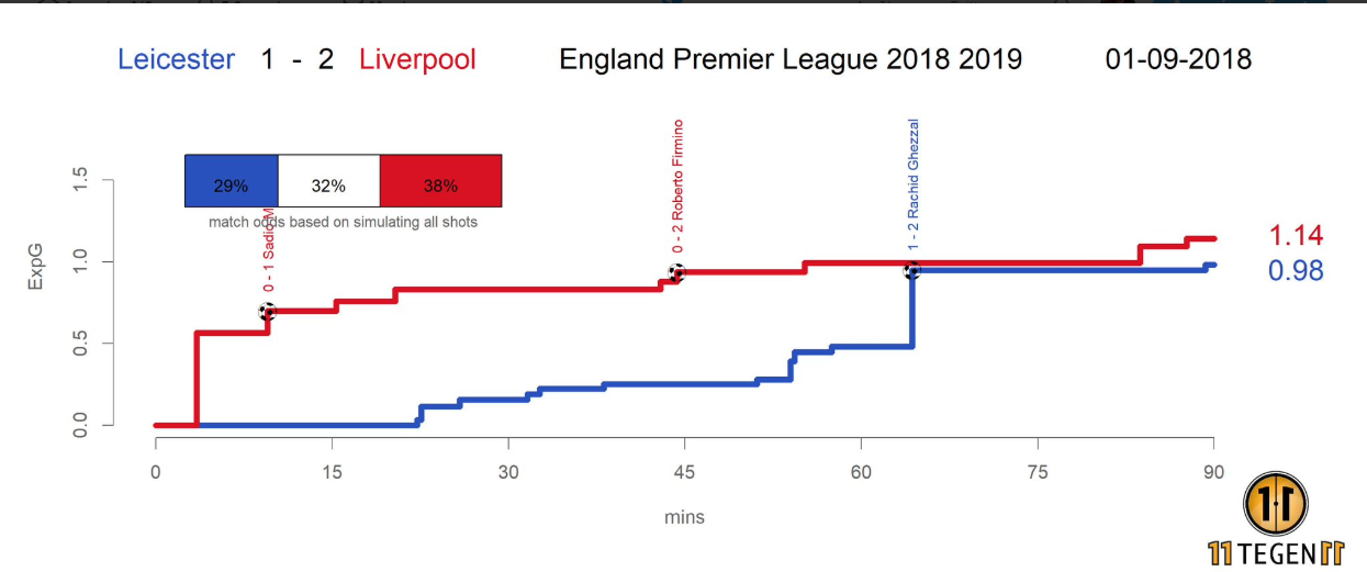 Και ερχόμαστε στο πιο πρόσφατο παράδειγμα, αυτό της Leicester. Η Liverpool μπήκε φουριόζα, σκόραρε νωρίς και άφησε τη μπάλα και την κατοχή στη διαχείριση των «αλεπούδων». Τα «γιατί;» και τα «για ποιο λόγο;» ορισμένων οπαδών, καθώς και τα «χάθηκε το κέντρο», μπορούν να απαντηθούν από το στατιστικό ότι η Leicester, μέχρι το 66′ και το «δώρο» του Alisson, είχε κάνει 10 τελικές, ακριβώς 50% συνολικών πιθανοτήτων να γίνουν γκολ (κατά μ.ό. δηλαδή κάθε ίδια τελική μπαίνει γκολ μία φορά στις 20). Θυμόμαστε εδώ κάτι απελπιστικά σουτ του Albrighton, ενώ αν σκεφτούμε την φάση της απόκρουσης του Alisson στο σουτ του Gray, μια φάση αρκετά καλή, τότε ο μέσος όρος των υπολοίπων πέφτει ακόμα περισσότερο. Η Liverpool, δηλαδή, διατηρούσε τα πράγματα σε εξαιρετική ισορροπία. Δυστυχώς, ήρθε το ολέθριο λάθος του Alisson να δώσει ένα αναπάντεχο γκολ στους γηπεδούχους και ταυτόχρονα μια φάση που εκτόξευσε τα συνολικά xGoals τους στα 0.96 (0.46xGoals από μόνη της)! Κάτι που δείχνει ότι αν δεν είχε μεσολαβήσει το λάθος του Βραζιλιάνου πορτιέρο, κατά πάσα πιθανότητα ούτε η Leicester θα είχε καταφέρει να παραβιάσει την εστία του.